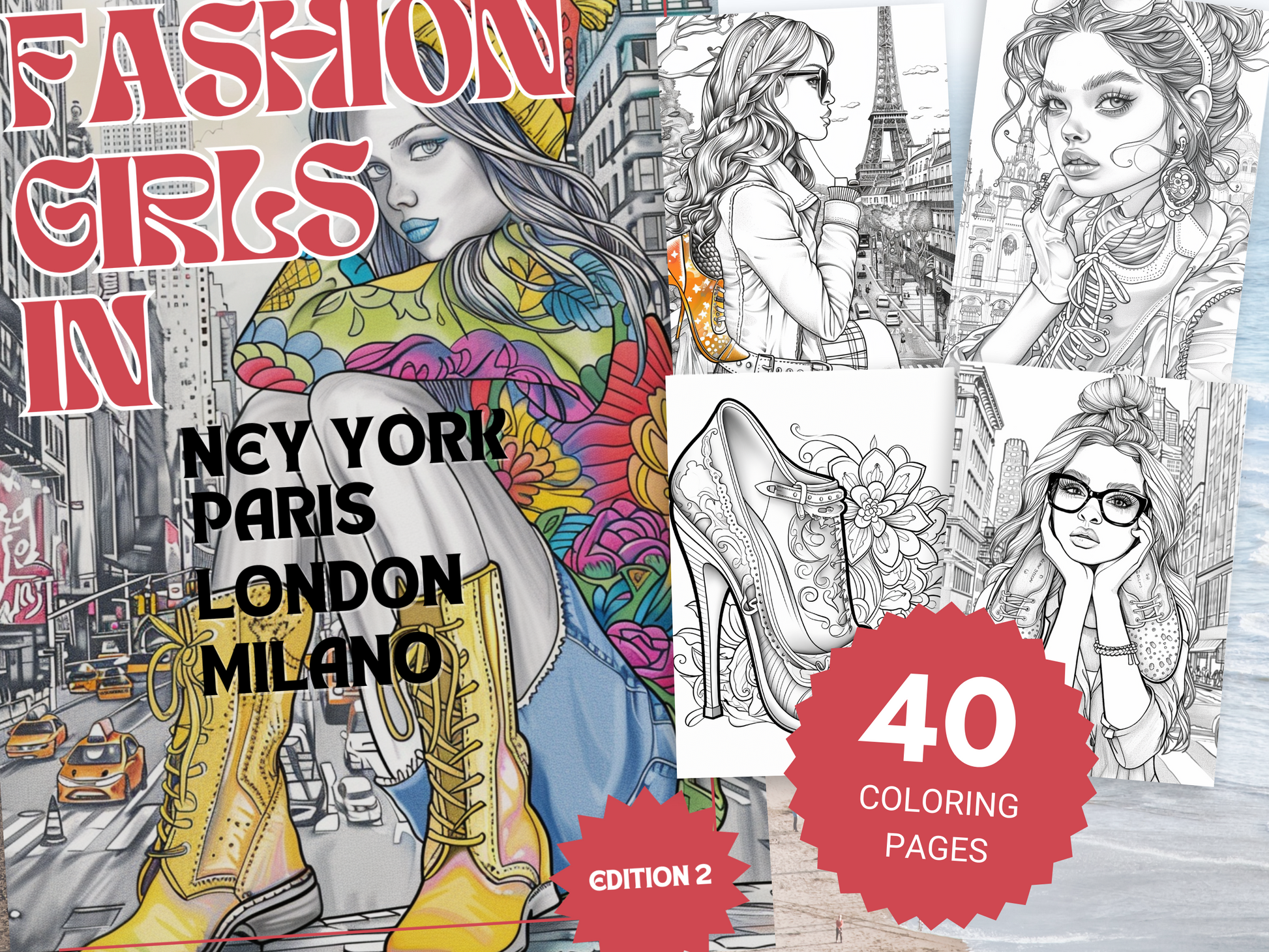 Journey through the fashion capitals of the world with every page you color. Each illustration captures the essence of New York's skyline, Parisian cafés, London's historic streets, and Milan's couture boutiques.